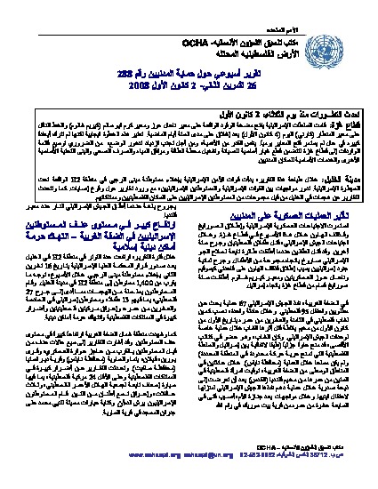 Israeli military incursions and Palestinian rocket and mortar fire continued throughout the week in the Gaza Strip. In the West Bank, 67 IDF search operations were reported with 95 Palestinians arrested. Sharp increase in Israeli settler violence in the West Bank—Muslim religious sites desecrated. Gaza Strip: 1.5 million people continue experiencing electricity cuts. Humanitarian aid and commercial imports severely curtailed- 11 Trucks/day average