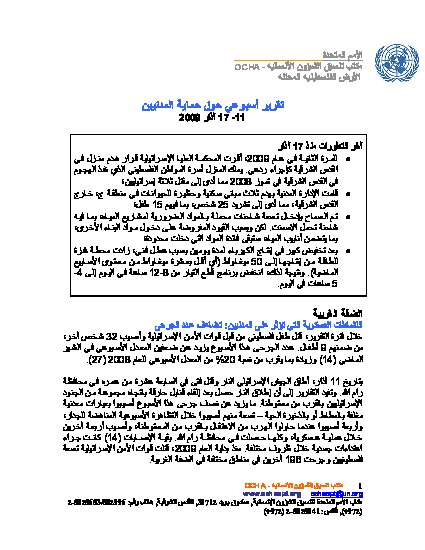 In the West Bank one Palestinian boy was killed by Israeli security forces and 32 others, nine of them children, were injured. The number of injuries is over twice as high as the weekly average of injuries reported in the last month (14) and an approximately 20% increase over the weekly average during 2008 (27). In Gaza, Israeli restrictions on Palestinian access to land and sea inside the Gaza Strip continues to severely damage livelihoods.