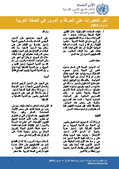 In the course of the past month the Israeli authorities have implemented several steps that have further eased the flow of Palestinian traffic to and from four West Bank cities: Nablus, Qalqiliya, Ramallah and Jericho. Initial field observations indicate that these measures have significantly reduced the amount of time required for Palestinians to access these cities. None of these steps, except one, included the complete dismantlement of checkpoints? infrastructure. To date, there are a total of 613 closure obstacles within the West Bank territory, including 68 are permanently staffed checkpoints.