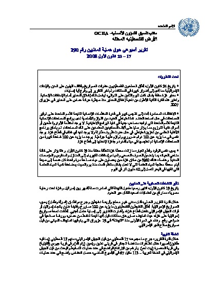 Latest on Gaza Strip-The ongoing closures have significantly reduced the capacity of UN humanitarian agencies to provide assistance in the event of an escalation in violence. UN humanitarian assistance programs have run out of stock for several essential supplies and are facing severe difficulties in implementing their regular programmes. UNRWA has no flour or cash-notes to distribute, affecting thousands of dependant beneficiaries. WFP has been unable to preposition stocks; in case of an emergency, it has no food available within the Gaza Strip. There are shortages of over 100 essential pharmaceuticals and critical emergency surgical kits.