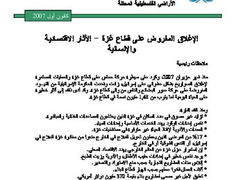 الاغلاق المفروض على قطاع غزة: الاثار الاقتصادية والانسانية| كانون األول/ديسمبر 2007
