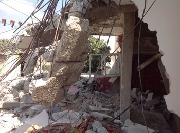 أيوب شماسنة البالغ من العمر 84 عاما في اليوم الذي أُخليت فيه العائلة في 5 أيلول/سبتمبر. الصورة التقتت من قبل مكتب الأمم المتحدة لتنسيق الشؤون الإنسانية.
