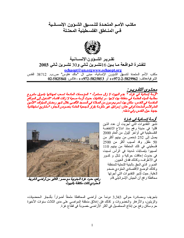 تقرير عن الأوضاع الإنسانية | 16 - 31 تشرين الثاني/نوفمبر 2003