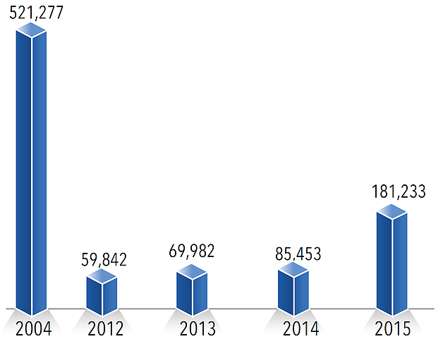 Exports: For the first time since the imposition of the blockade in 2007, Israel allowed the export of goods to Israel. In 2015, there was six-fold increase in exports and transfers from Gaza compared to 2014. Total exits are still 14.5 per cent of a wider range of exports that left Gaza for Israel, the West Bank and the external world in 2005, prior to the imposition of various restrictions ending in a full blockade in 2007.
