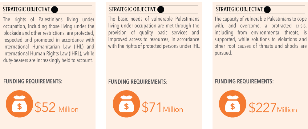 The situation in the OPT continues to be characterized as a protracted protection crisis, largely attributable to Israel’s ongoing occupation of the West Bank, including East Jerusalem, and Gaza Strip, the continuing internal Palestinian divide and violations of international law. Accordingly, the centrality of protection has been maintained as a shared system-wide responsibility throughout the 2019 HRP, with approximately 10 per cent ($36 million) of the total funding requested targeting ongoing protection needs.
