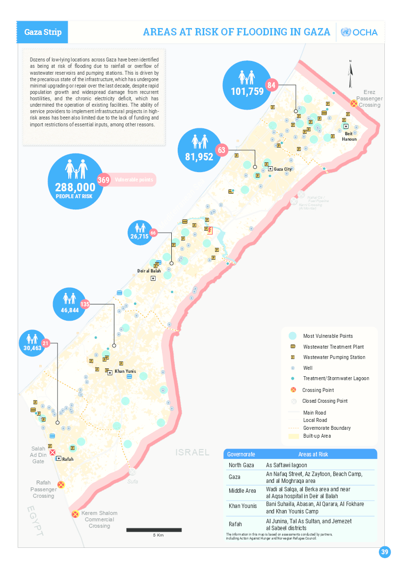 Areas at risk of flooding in Gaza