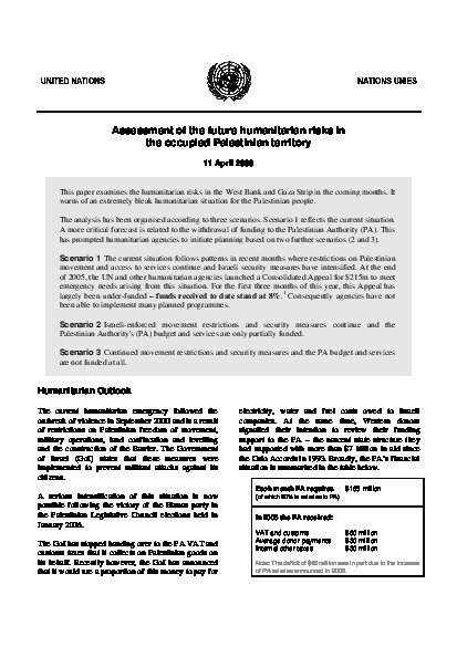 3 scenarios for the coming months including an analysis of the significant humanitarian impact of cutting assistance to the Palestinian Authority.