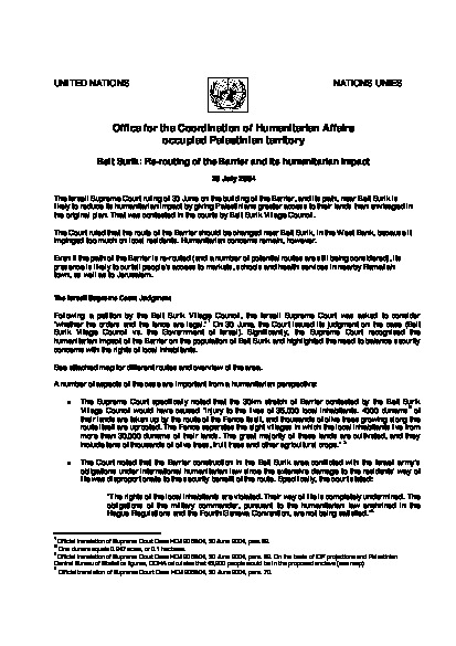 Beit Surik: re-routing of the Barrier and its humanitarian impact 21 Jul 2004