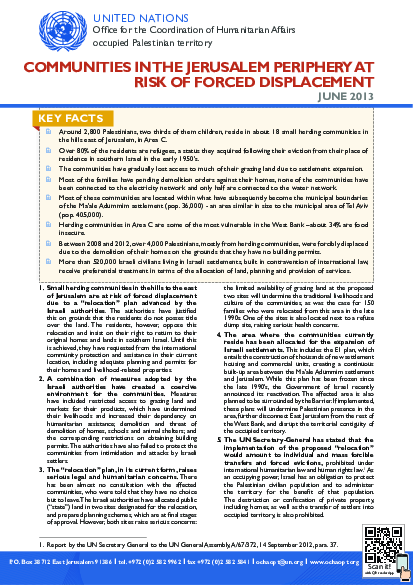 Small herding communities in the hills to the east of Jerusalem are at risk of forced displacement due to a “relocation” plan advanced by the Israeli authorities.