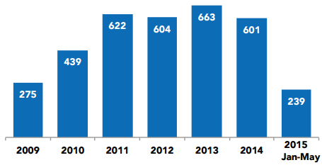 Between January and September 2015, a total of 462 Palestinian-owned structures have been demolished, nearly the same as the equivalent period in 2014. The number of people displaced as a result of demolitions (525) fell by 45 per cent compared with 2014. This reflects the increased targeting in 2015 of livelihood-related structures (e.g. animal shelters, storage rooms, water cisterns, commercial stands) rather than residential structures.