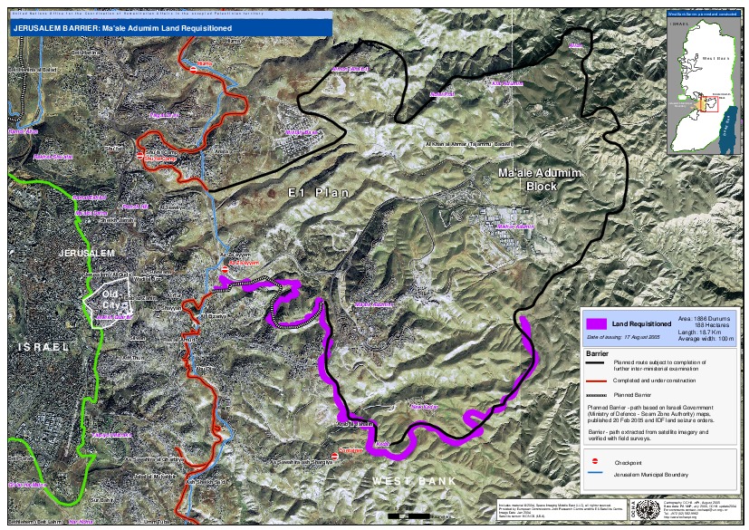 Jerusalem Barrier: Ma'ale Adumim Land Requisitioned | Satellite Map | August 2005