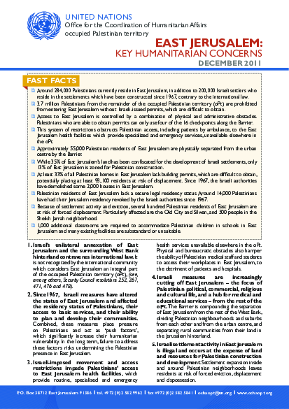 East Jerusalem: Key Humanitarian Concerns | December 2011