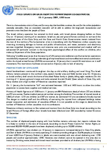 Field up-date on Gaza from the Humanitarian Coordinator | 10-11 January 2009