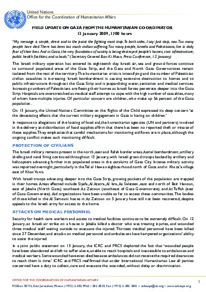 Field up-date on Gaza from the Humanitarian Coordinator | 13 January 2009