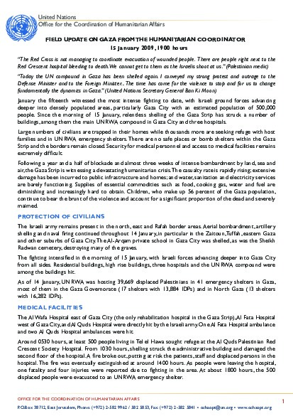 Field up-date on Gaza from the Humanitarian Coordinator | 15 January 2009