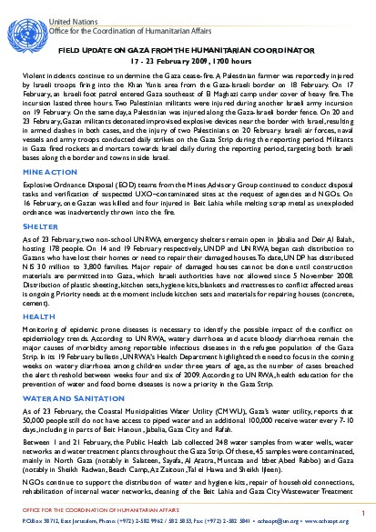 Field up-date on Gaza from the Humanitarian Coordinator | 17 - 23 Feb 2009