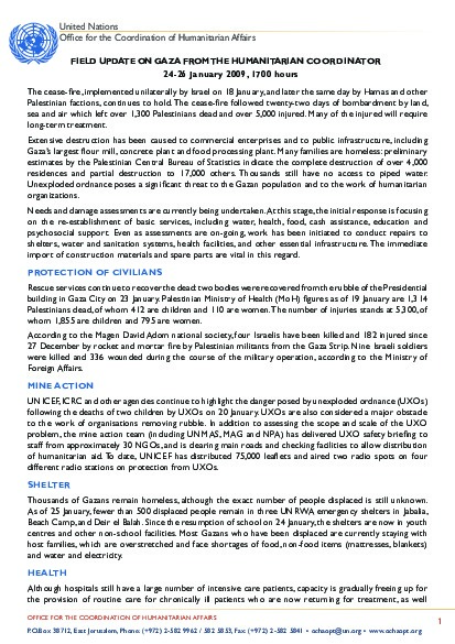 Field up-date on Gaza from the Humanitarian Coordinator | 24-26 January 2009