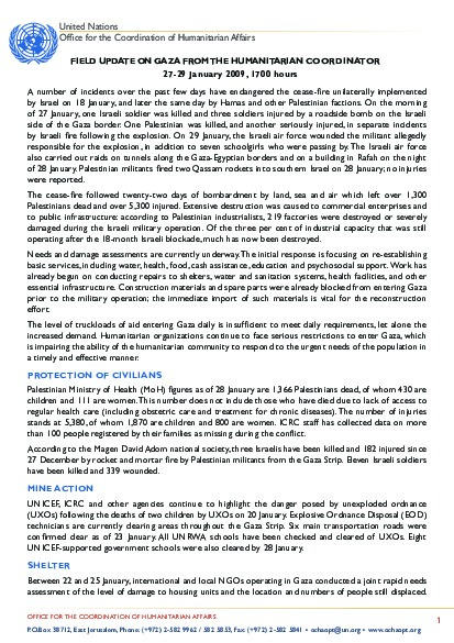 Field up-date on Gaza from the Humanitarian Coordinator | 27-29 January 2009