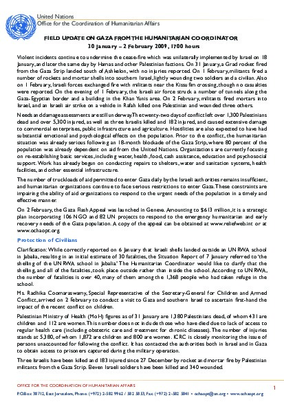 Field up-date on Gaza from the Humanitarian Coordinator | 30 Jan - 2 Feb 2009