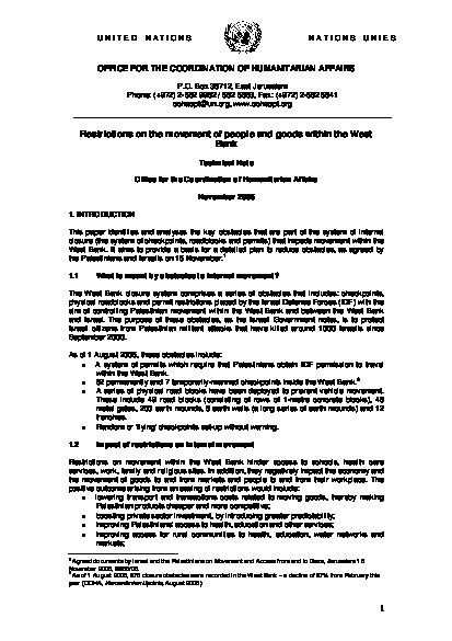 Restrictions on the movement of people and goods within the West Bank | Nov 2005 | English