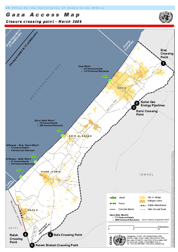 Gaza access, monitoring closure crossing point and licensed boats and fisherman. March 2006