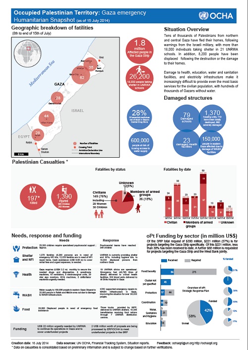 Gaza Emergency Humanitarian Snapshot (as of 15 July 2014)