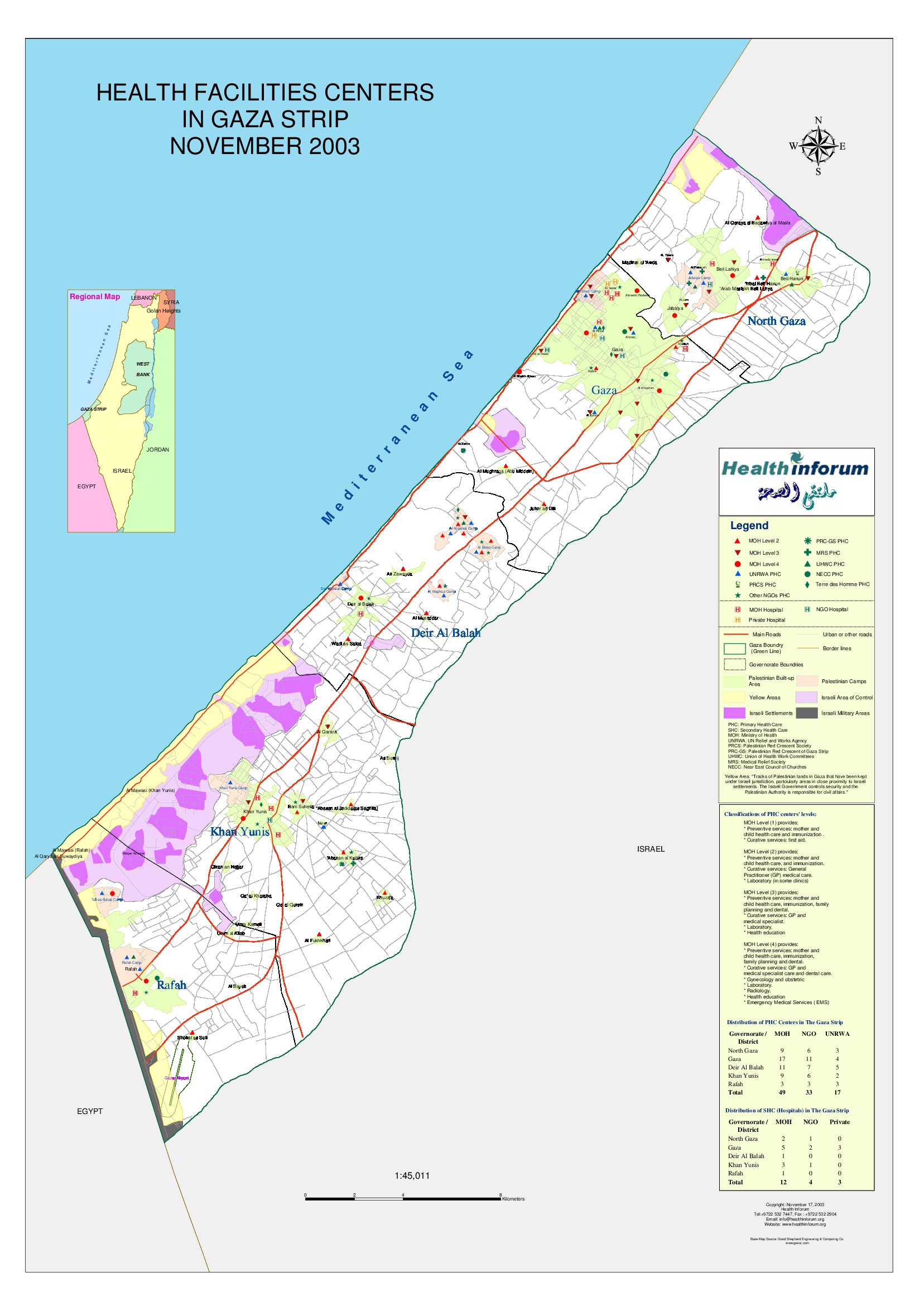Gaza Strip: Health facilities centers - Nov 2003