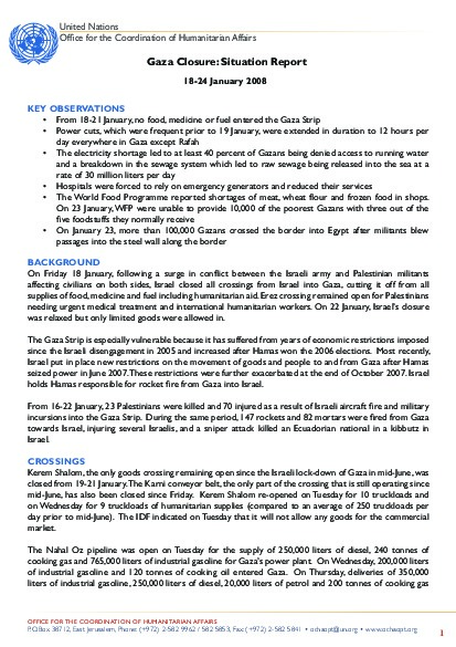 Gaza Humanitarian Situation Report | 18-24 January 2008