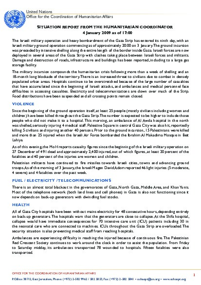 OCHA humanitarian update on Gaza crisis since Israeli military ground operation. This report focuses on casualties; food, health and water & sanitation situation; and priority needs.