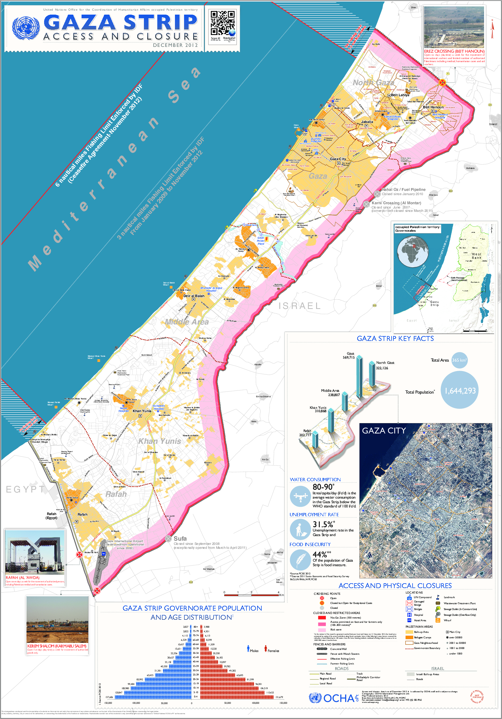 An updated access and closure map of Gaza Strip. The map was designed to be printed on A0 (1189 x 841 mm) paper. A navigable version on mobile devices ( iPhone/iPad and Android , using Avenza PDF Maps App) is available here .