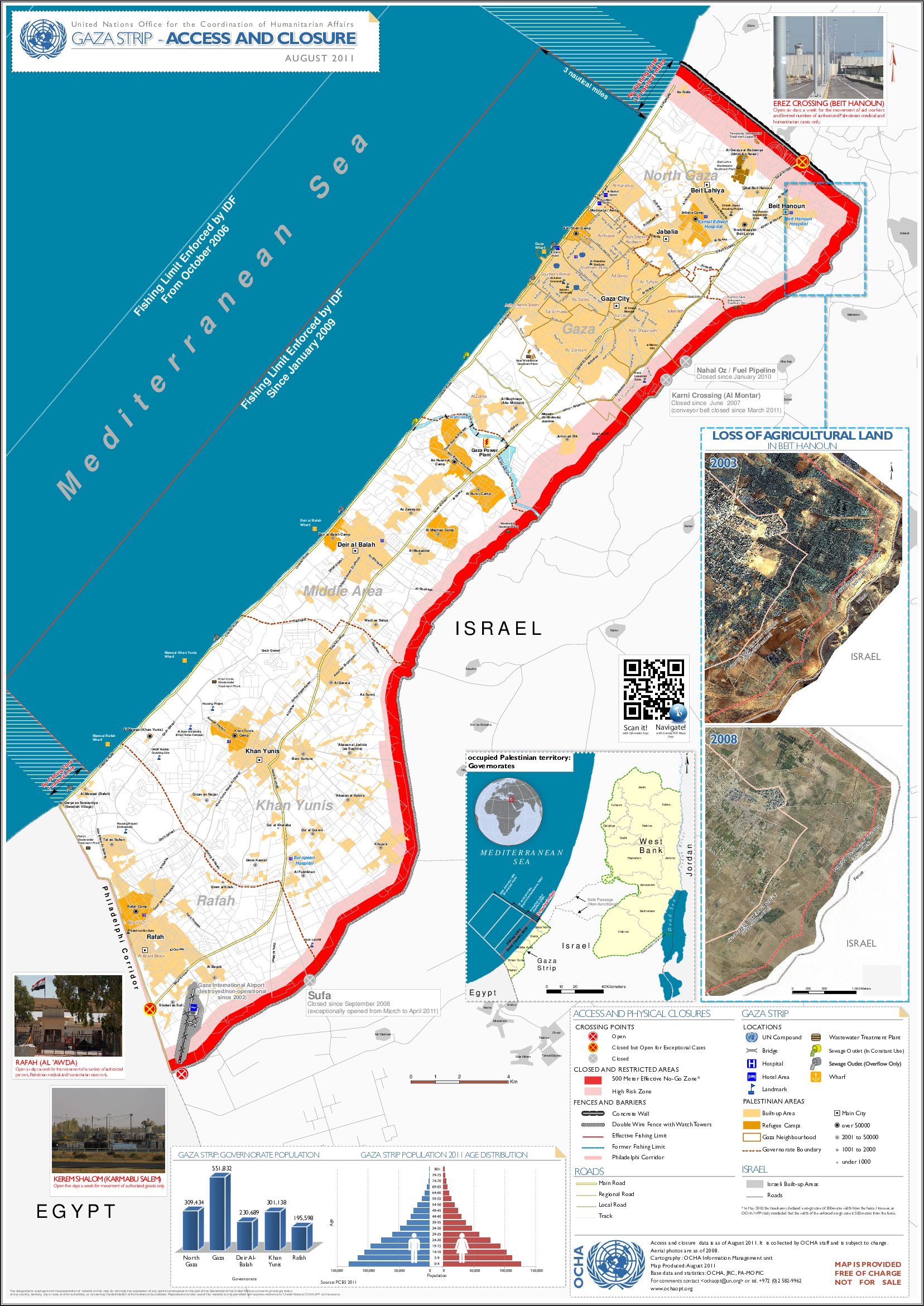 Gaza Strip Access and Closure Map - IPhone/IPad version | August 2011