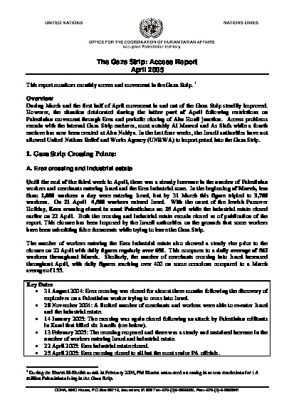 Gaza Strip: Humanitarian Situation Update - Access Report (with map) | Apr 2005