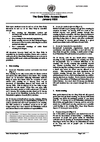 Gaza Strip: Humanitarian Situation Update - Access Report | January 2006