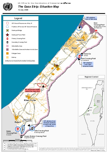 Situation report after operation Summer Rain, IDF entry points, Destroyed infrastructure. With IDF ground presence.