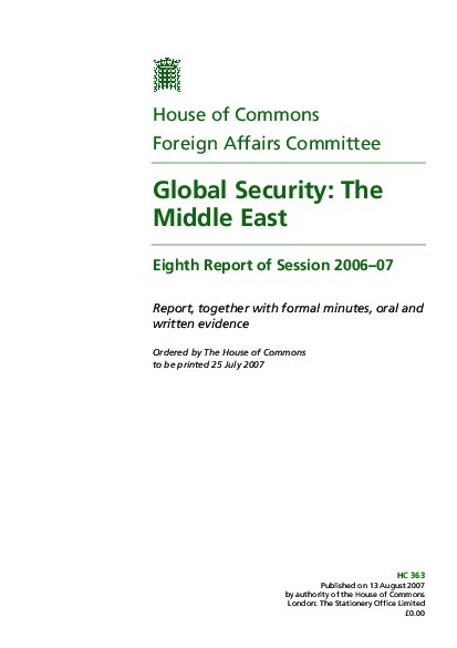 Global Security: The Middle East | House of Commons Foreign Affairs Committee | Aug 2007