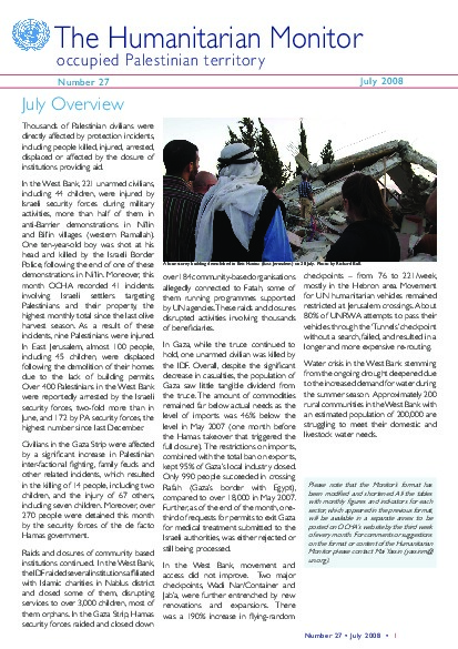 In July, thousands of Palestinian civilians were directly affected by protection incidents, including people killed, injured, arrested, displaced or affected by the closure of institutions providing aid.