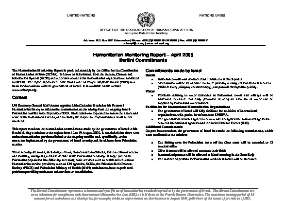 Humanitarian Monitoring Report - Apr 2005