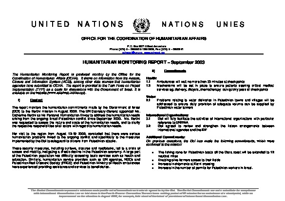 Humanitarian Monitoring Report - Sep 2003