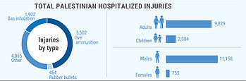 Since 30 March 2018, the Gaza Strip has witnessed a significant increase in Palestinian casualties in the context of mass demonstrations and other activities along Israel’s perimeter fence with Gaza, taking place as part of the «Great March of Return», as well as during hostilities. The large number of casualties among unarmed Palestinian demonstrators, including a high percentage of demonstrators hit by live ammunition, has raised concerns about excessive use of force by Israeli troops. Exposure of children to violence along with media reports of the militarization of children are also of concern. Despite significant assistance provided, Gaza's health sector is struggling to cope with the mass influx of casualties, due to years of blockade, the internal divide and a chronic energy crisis, which have left essential services in Gaza barely able to function.