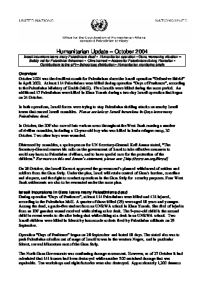 This OCHA report summarizes the humanitarian situation for the West Bank and Gaza Strip.
