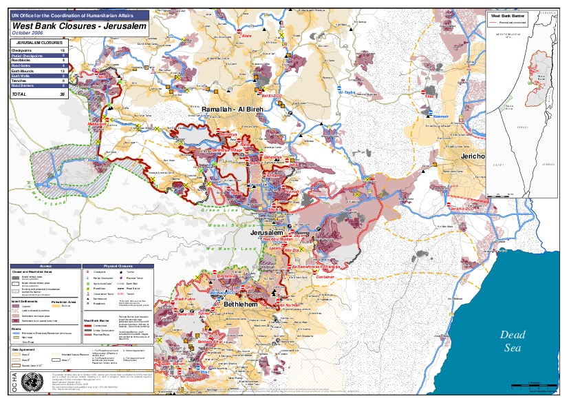 Updated closure map: Checkpoints, road barriers, trenches, closure count, barrier route and settlements October 2006
