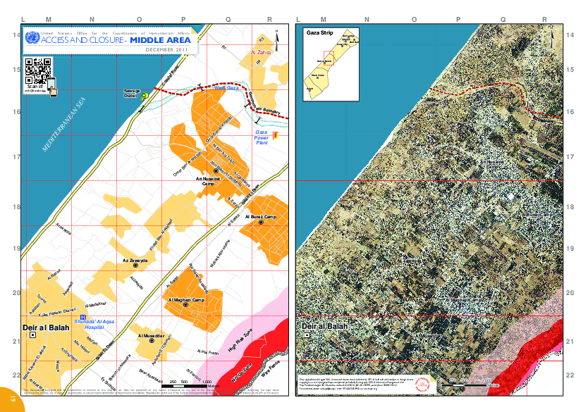 An updated access and closure map of Middle Gaza Strip. The map was designed to be printed on A3 (297 x 420 mm) paper. For updated information on the flow of goods through Gaza crossings , check the Gaza Crossings online database.