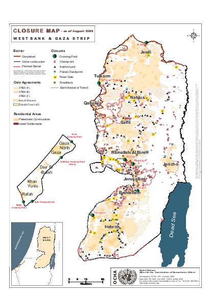 Closure map, showing all closures as points, barrier or crossing points. Data layer from August 2005
