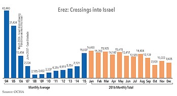 After a rise in the first half of 2016, the number of Palestinians permitted to cross Erez fell compared to 2015