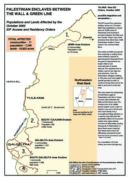 Palestinian enclaves between the wall and the green line