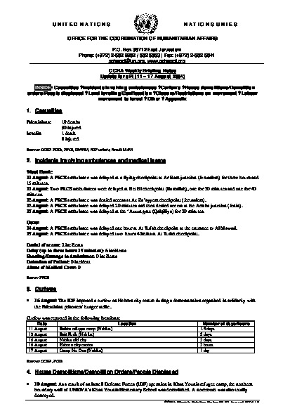 Humanitarian Briefing Notes 11 - 17 Aug 2004