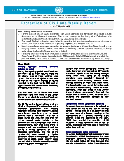 Protection of Civilians Weekly Report | 11 - 17 Mar 2009