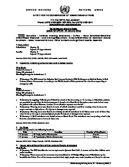 Curfews in Jericho and Nablus26 Palestinians and 8 Israelis killed , 62 Palestinians and 27 Israelis injured House demolitions in Bethlehem, , Ramallah, Bethlehem