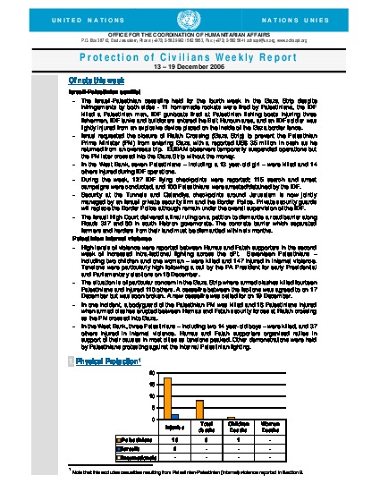Protection of Civilians Weekly Report 13- 19 December 2006