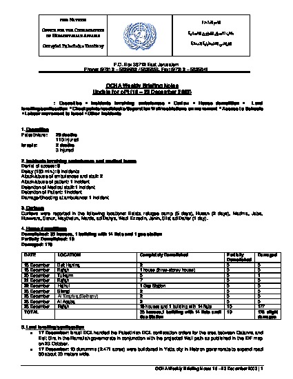 Humanitarian Briefing Notes 16 - 23 Dec 2003